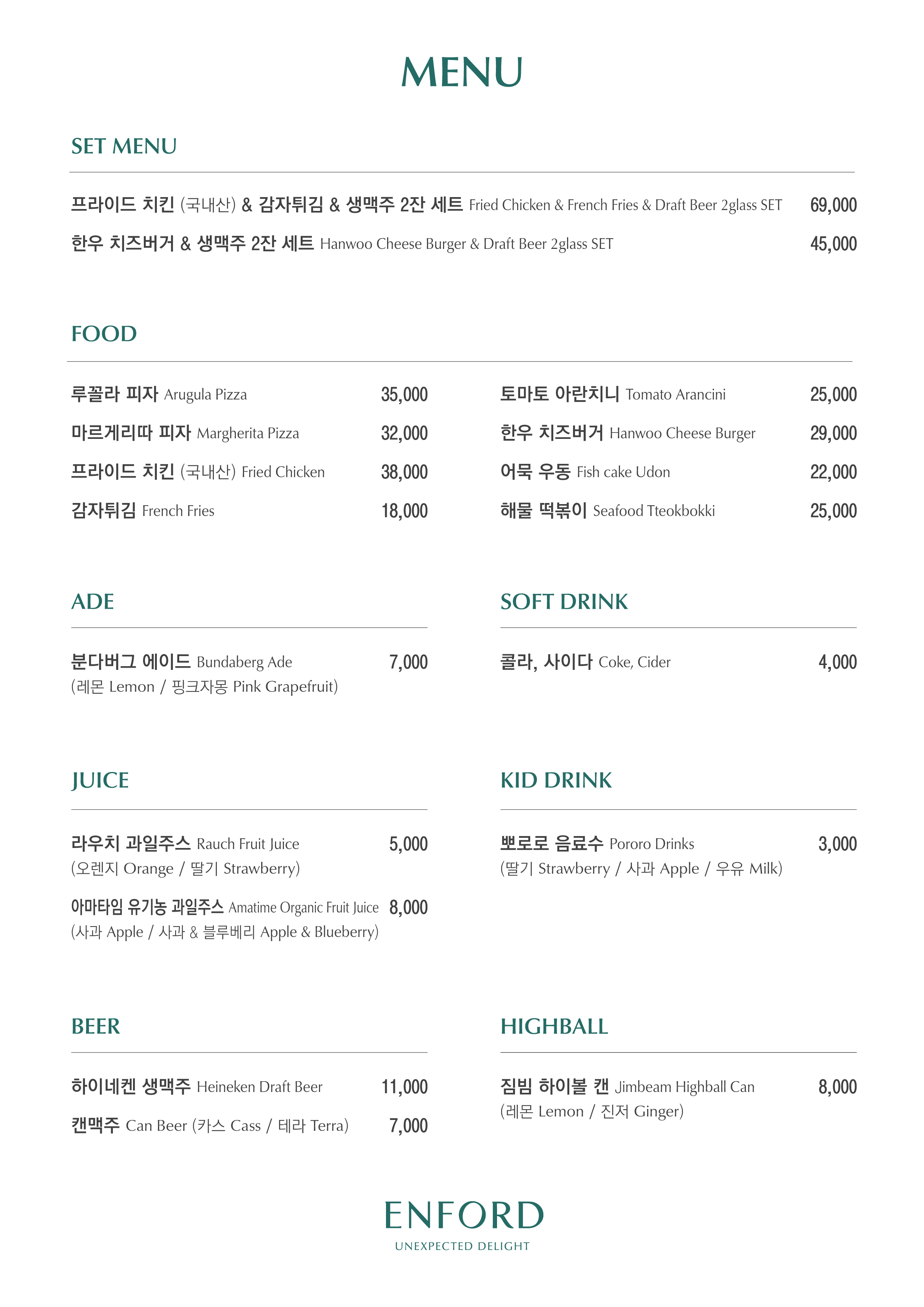 Extra Person: Adult +₩66,000 / Child +₩33,000